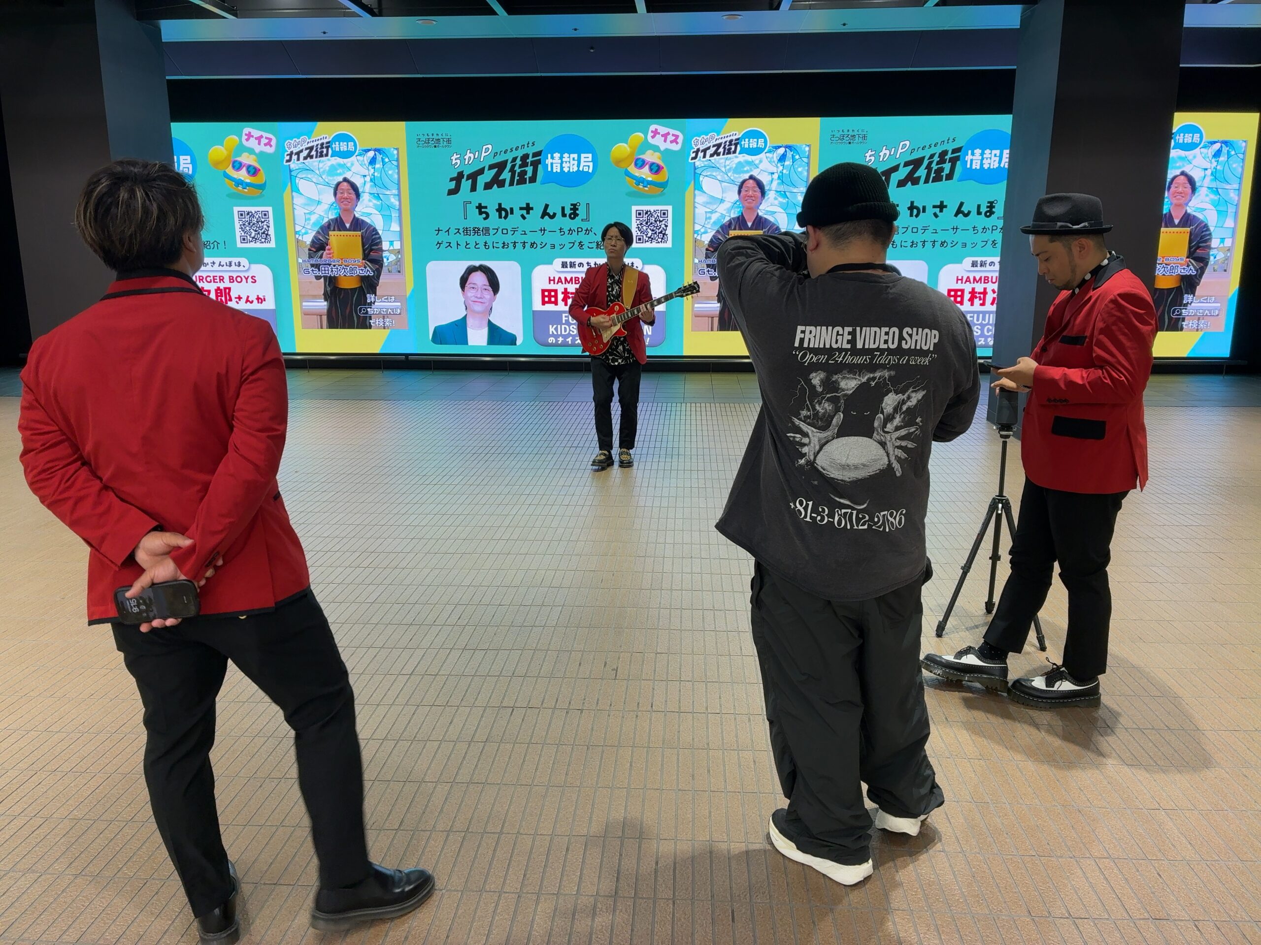 札幌の街が、音楽で動き出す。 北海道を拠点に活動する3人組バンド ハンバーガーボーイズ が、 新曲のミュージックビデオ(MV)を札幌市内で撮影しました。 映像には、テレビ塔周辺や大通エリアなど、札幌の象徴的なスポットが多数登場。 その中のワンシーンとして、「さっぽろ地下街」でも撮影が行われました。