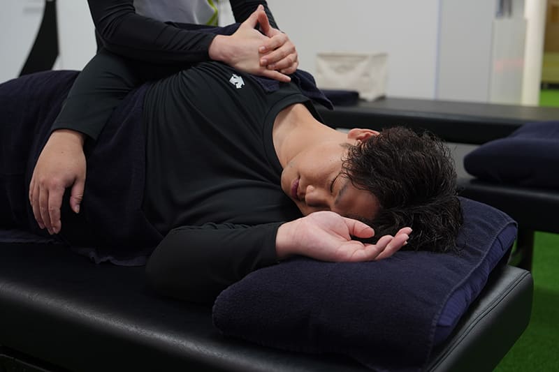 セルフケアやマッサージでは届かない筋肉を、トレーナーが意識的に動かすことで身体のコンディションを整えていきます。 -